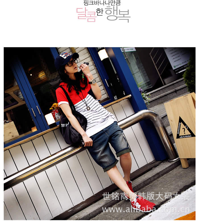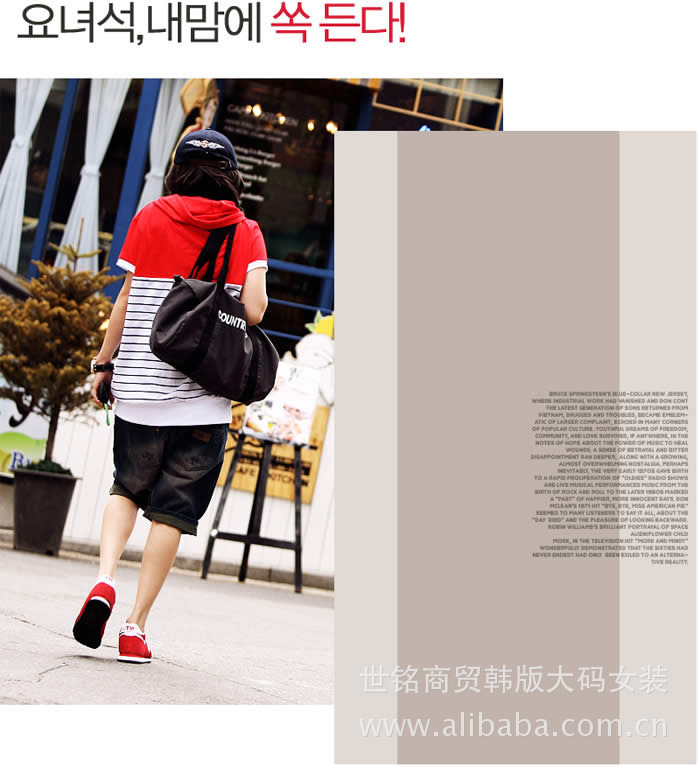 YY特色:條紋拼接小T是今年的流行哦!連帽有點小蝙蝠袖的休閑設計