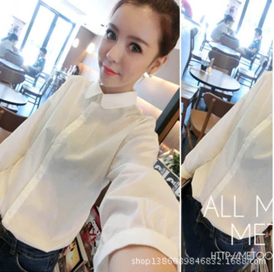 新品包郵2014秋冬韓版百搭簡約修身九分袖襯衫娃娃領白襯衣女 白