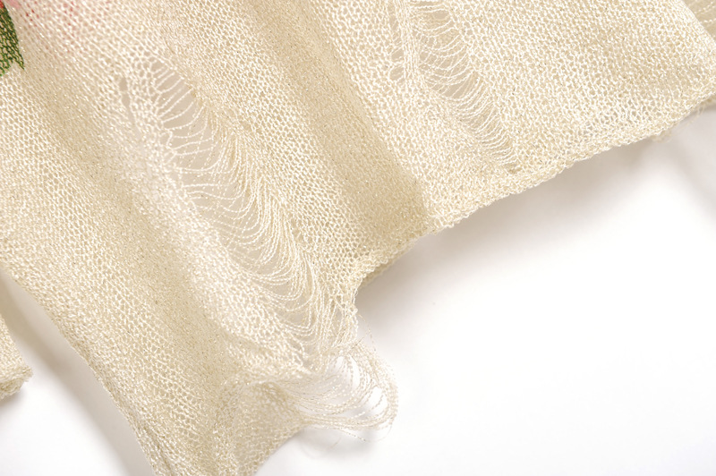 親們:注意嘍:這款針織衫真的非常難做,難做是因為它上面的玫瑰花朵,并不是印上去的,都是進口機器織上去的,親們仔細數看下,可發現一朵玫瑰有五種顏色,真的非常立體,非常漂亮,與原版一樣。還有它的撕毀效果,看似無心,卻又那么的恰到好處。一切都是那么完美。