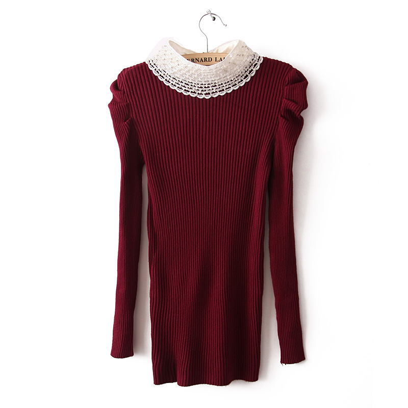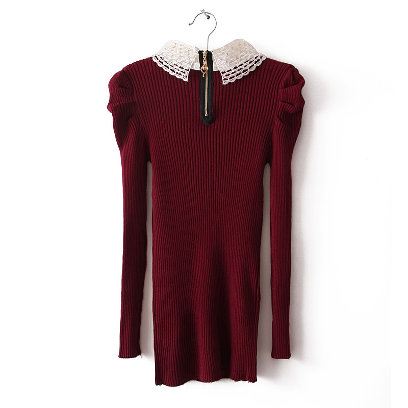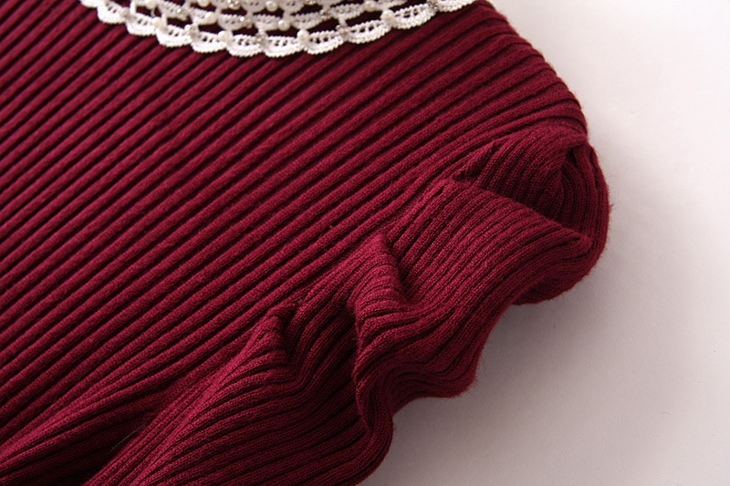 D79-14-041 歐美立領花邊套頭長袖打底衫 針織衫 打底批發
