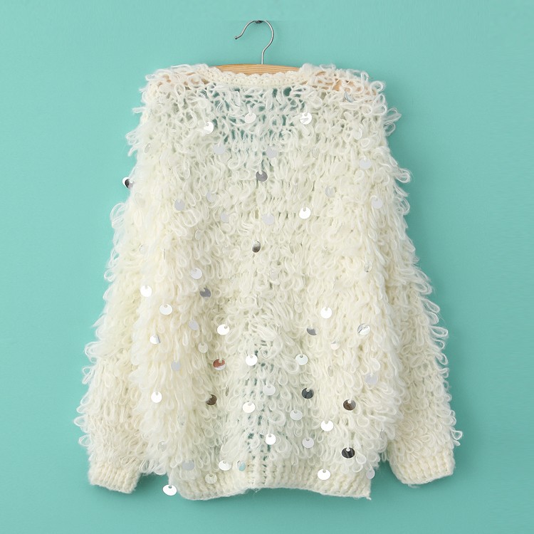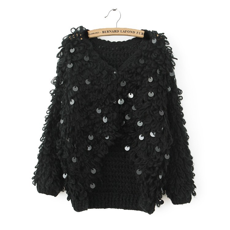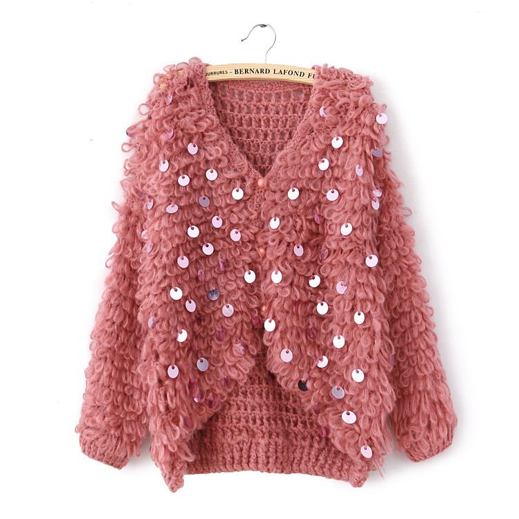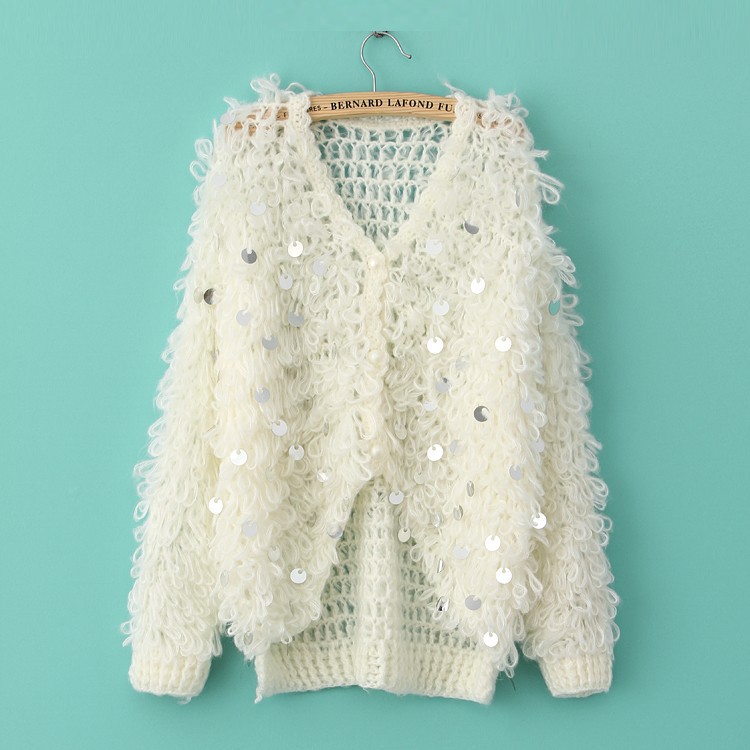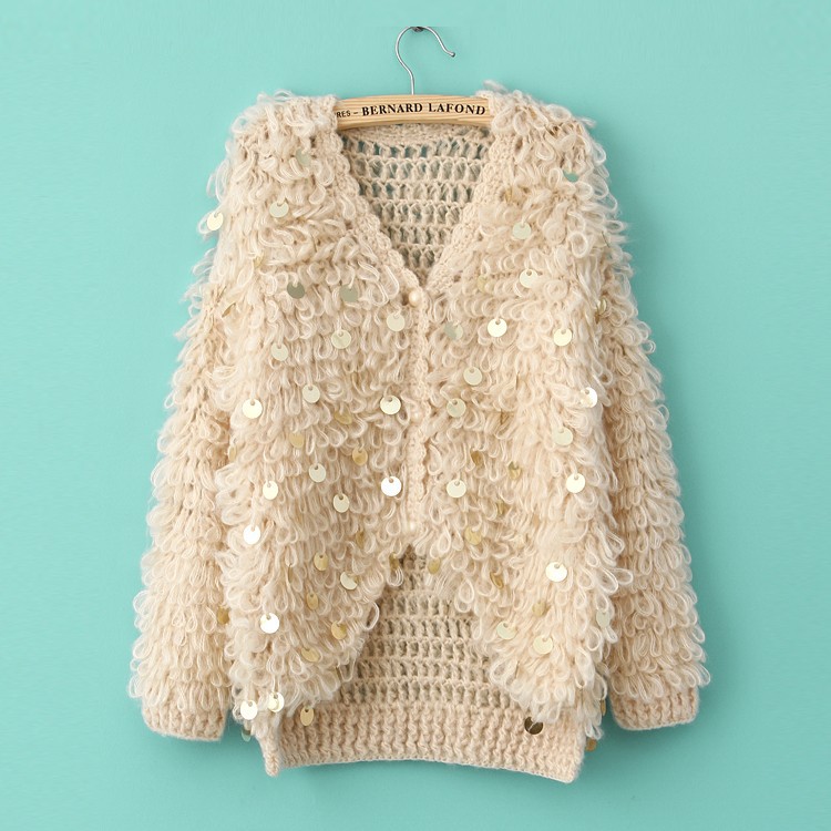2013女裝新款粗棒針女式毛衣外套韓版新品亮片長袖女裝外套開衫