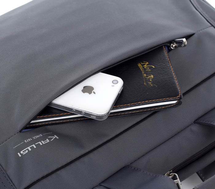 【包包結構】:包包分為兩個隔層,正面個隔層可放一些筆、名片等小件物品。中間的隔層有筆記本專用的防震保護層,防震防摔。背面的小隔層可放一些紙張等。