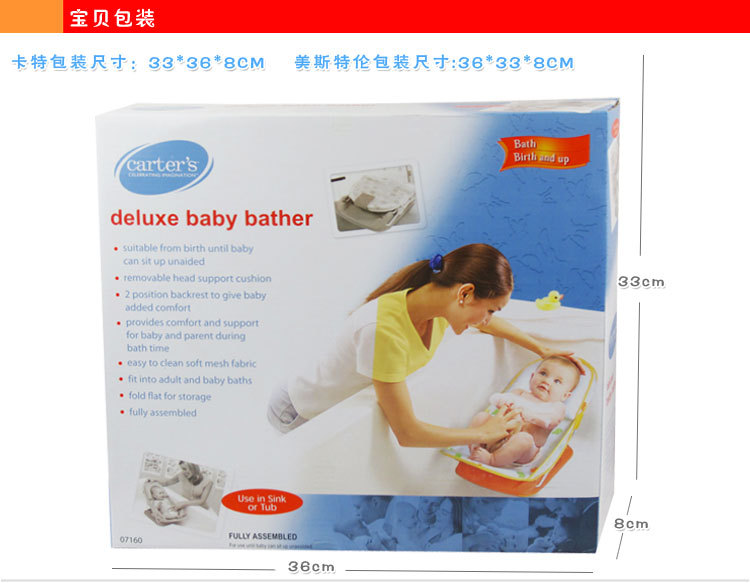 產品特點:卡特嬰兒洗澡椅安裝方便,安全可靠??烧郫B存儲不點空間,舒適的網狀布使新生兒在搖籃內洗澡更平靜且放松。堅固的底部制動支腳給新生兒特別的支撐,是每個新媽咪的 放心選擇。
