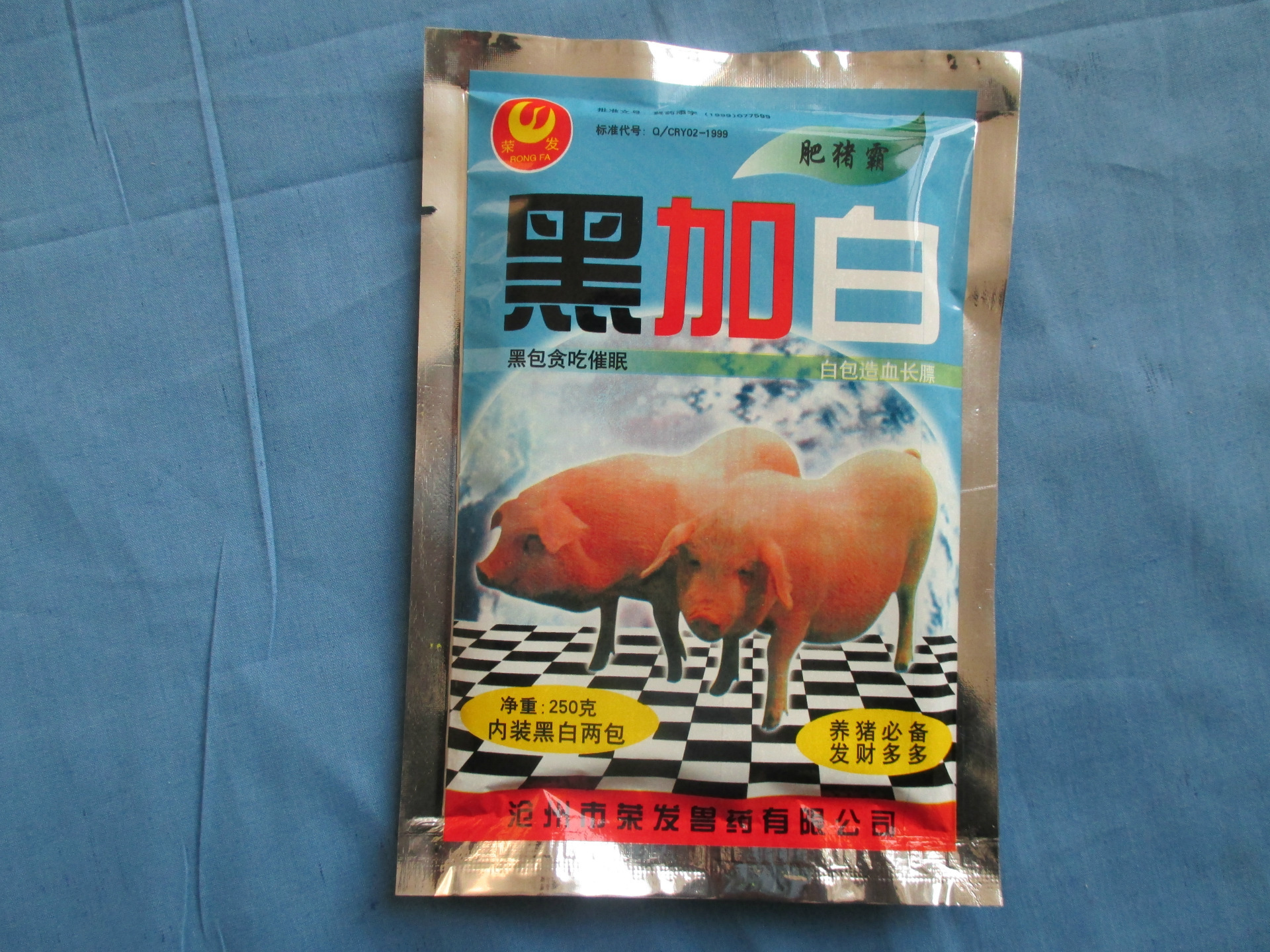 【用法與用量】:開袋后先將黑包兩袋原料混合均勻,然后與100公斤飼料攪拌均勻(自配飼料50公斤加本品一包)即可飼喂,并給足清水供飲用。