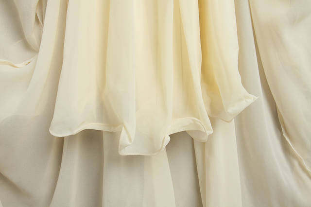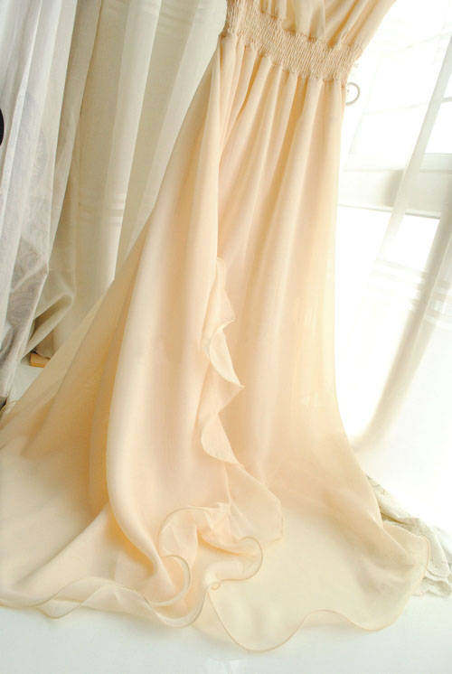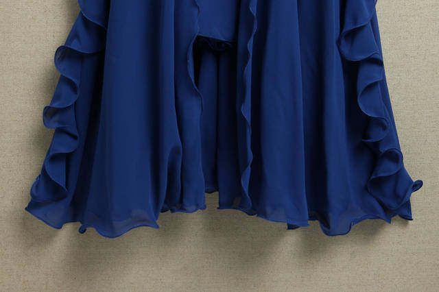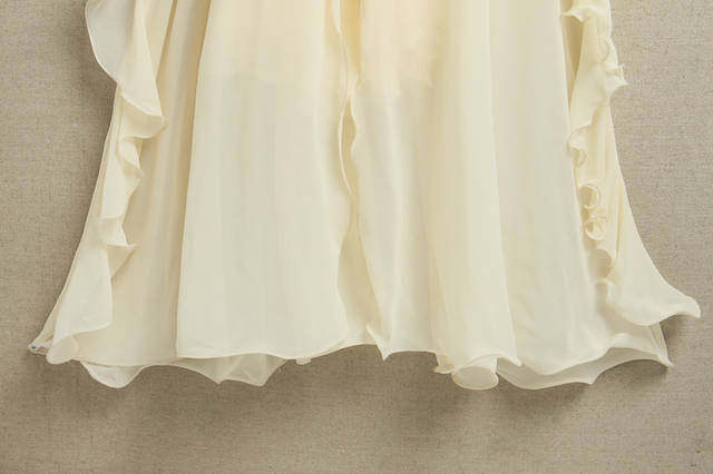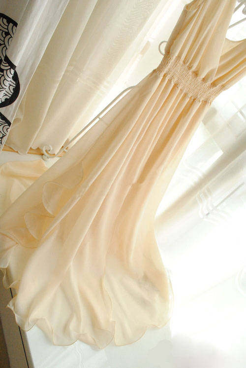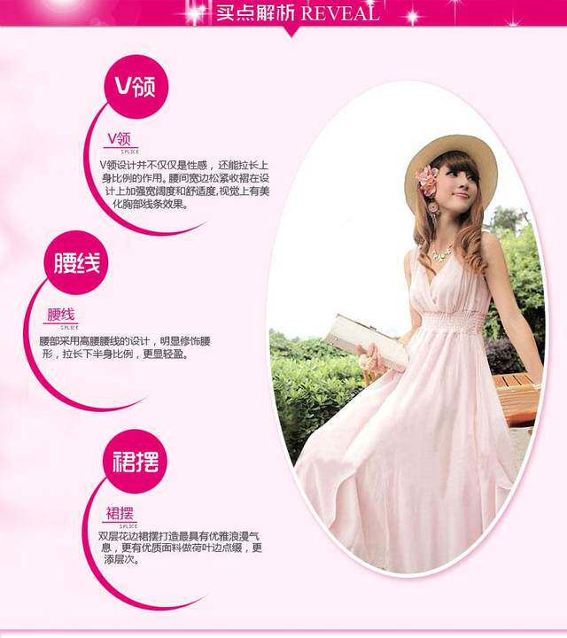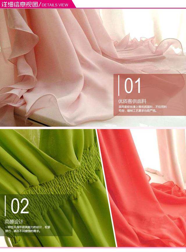 很唯美的一條美裙~這個質地。這個做工。其他店子180以上的價格~裙擺是雙層雪紡的。裙子料子很垂。很墜手。下擺左右兩側,大大的荷葉邊,穿起來很美哦!裙子下擺中間采用n形開叉設計,開叉長度48厘米左右!腰圍是松緊的。裙子很大氣! 氣場很足! 雪紡質地。怎么都不比棉質,。覺得不會露。建議親們穿肉色內衣內褲哈。下擺有上雨絲線!更能體現出裙子的整體效果還有記得要穿高跟鞋喔! 更能突出裙子的飄逸、