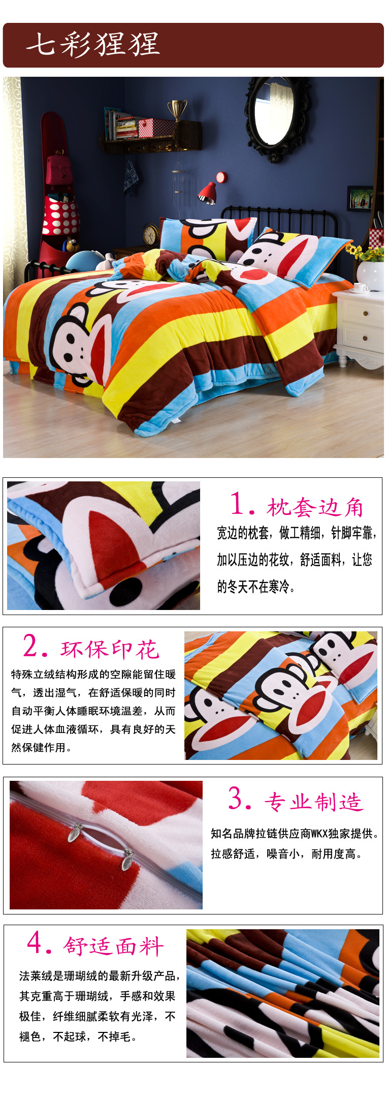 大嘴猴法萊絨四件套 特價 床上用品/套件