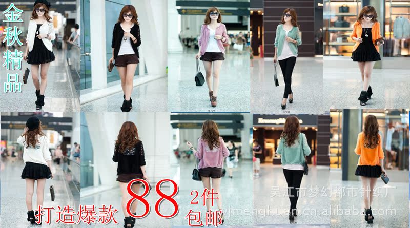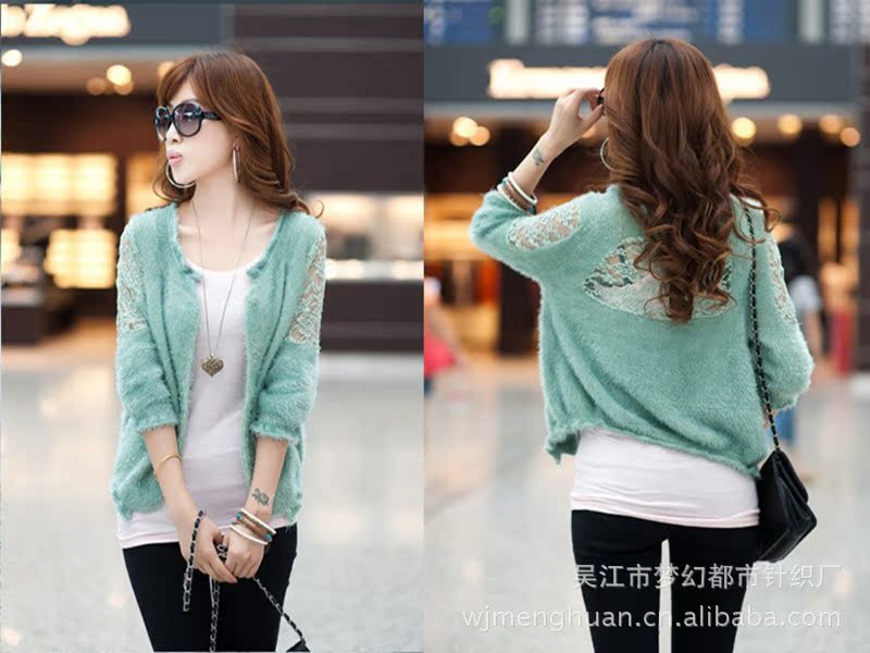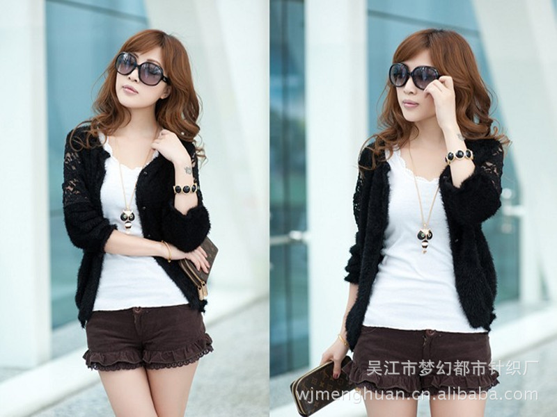 針織外套批發 寬松開衫毛衣 鏤空針織衫短袖 蕾絲雪紡打底衫 韓版