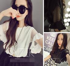 2015(加大版) 韓版甜美 網紗鏤空木耳袖拼接短款T恤 女 01-2277¥16.00