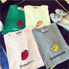 韓國2015可愛水果刺繡字母糖果色T恤四色 610-6972¥18.00