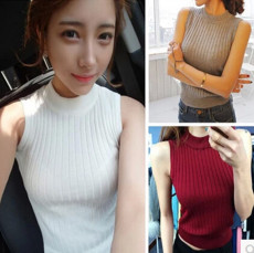 2015韓版春裝新款無袖T恤上衣 修身高領套頭打底針織背心01-528¥18.00