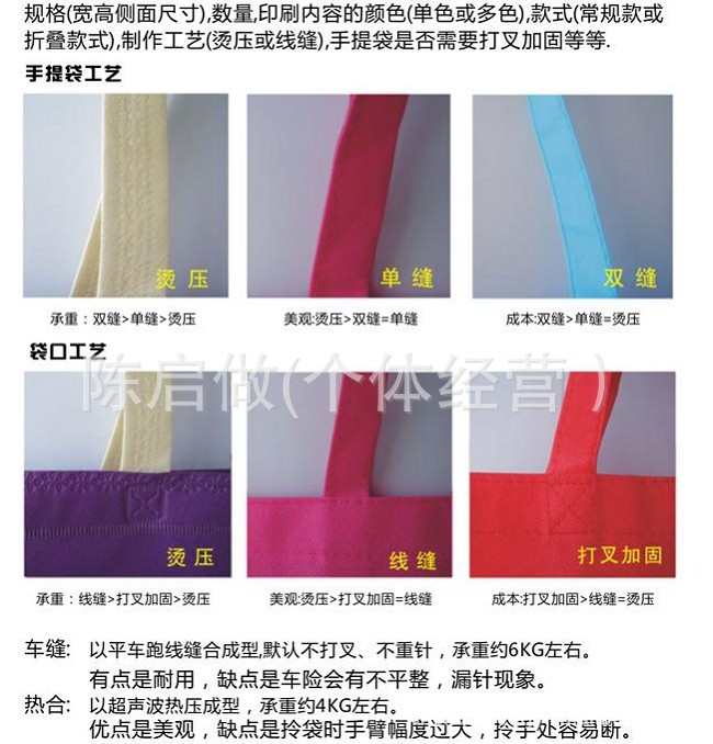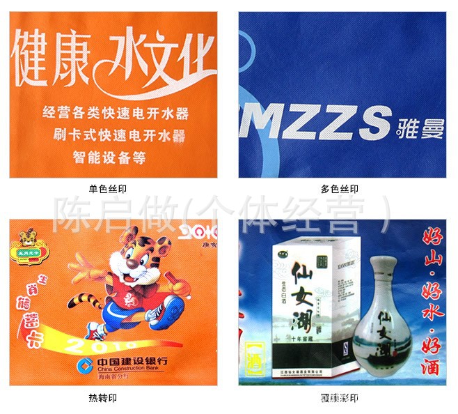 手提式、覆膜式、單背式無、燙壓式、鐳射式、錢包式、打孔式、背心式等無紡布環保袋