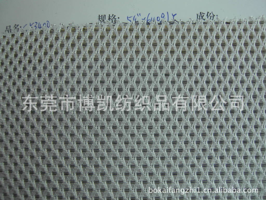 三明治網布是一種雙針床經編網布,由網孔表面,連接單絲,平布底面組成.因其立體網布的結構,很像西方的三明治漢堡,故取名為: 通常,上下兩面絲是滌綸,中間連接絲為滌綸單絲.厚度一般為2-4mm.在汽車座套、箱包鞋材、輪滑鞋、床上用品高彈力、透濕、透氣、抗菌防霉,、汽車座套、辦公家具、醫療防護等領域有廣泛運用;優越的透氣性,網孔多樣性,美觀大方,耐磨、耐洗、達到國際環保要求。