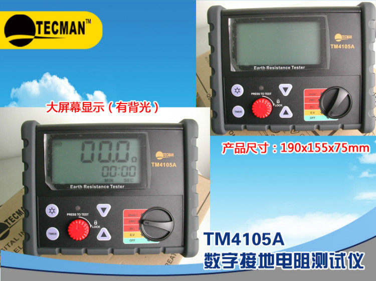 TM4105A是“TECMAN-泰克曼”品牌生產的多功能型數字式接地電阻測試儀,TM4105A接地阻值測量到2000Ω,并具自動減除線阻,電阻自動歸零,連續測量時間設定等功能。