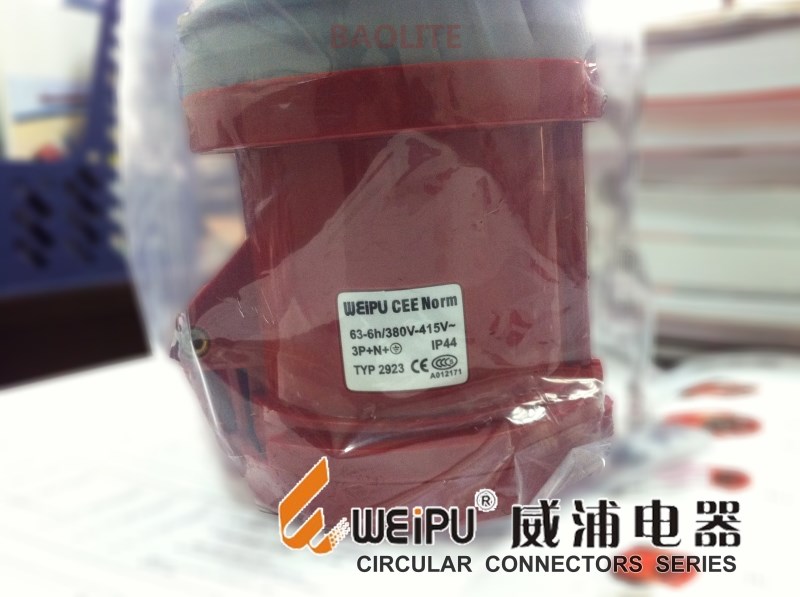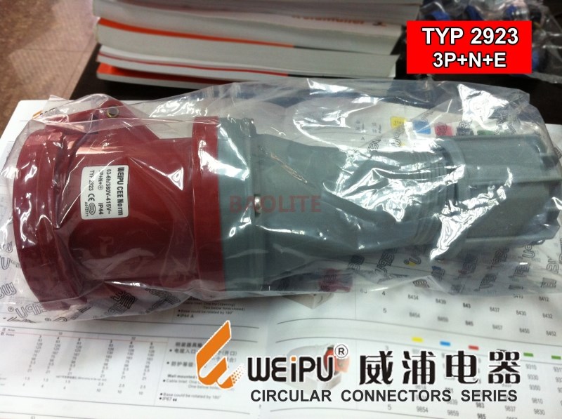 原裝正品威浦TYP 2923紅色工業插頭 防水63安5芯航空插 連接器
