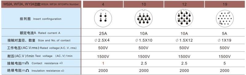 威浦 WS24-4芯-10芯-12芯-19芯 直式工業連接器航空插頭TQ/TP