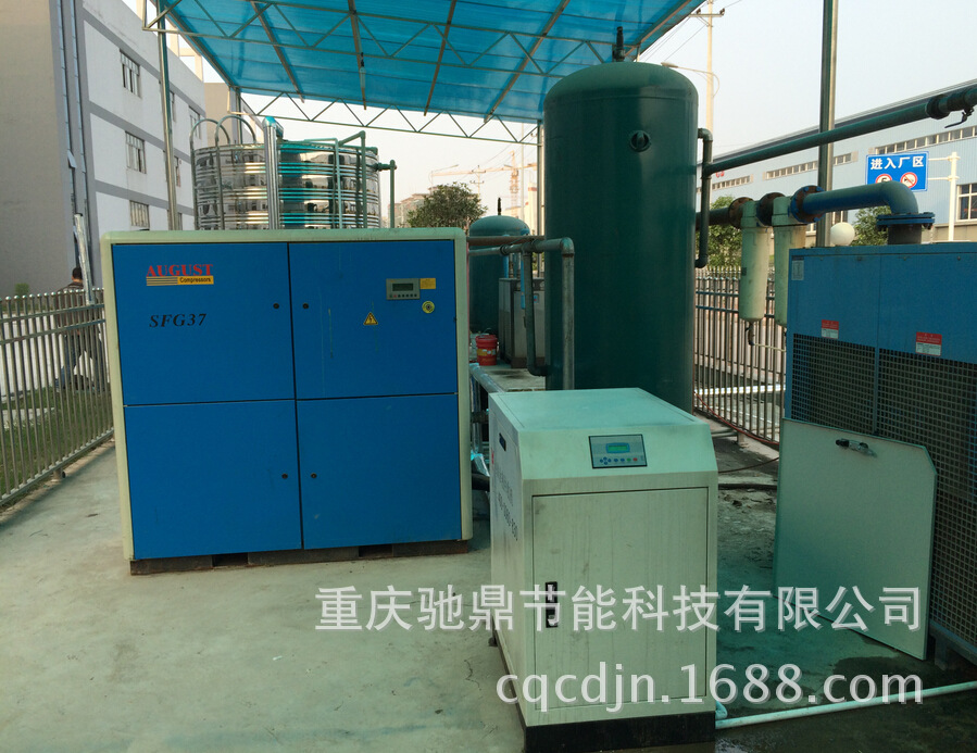 零成本為工礦企業提供生產生活用熱水空壓機是一個能耗比較大的動力設備,一般空壓機的輸入功率除了部分變成了壓縮空氣的勢能以外,其它也有一部分的能量以廢熱的形式被排放到空氣中浪費掉。同時,為降低空壓機的油溫,還需要消耗電能開動冷卻風機來降低油溫,以保證空壓機的正常運行。充份利用這些浪費的熱能有利于節能減排,降低工廠的運營成本,同時改善空壓機的運行狀態,提用這些浪費的熱能有利于節能減排,降低工廠的運營成本,同時改善空壓機的運行狀態,提高產氣量,節約空壓機的耗電費用。因此,利用這一浪費的能源,已經成為越來越多企業的共識。