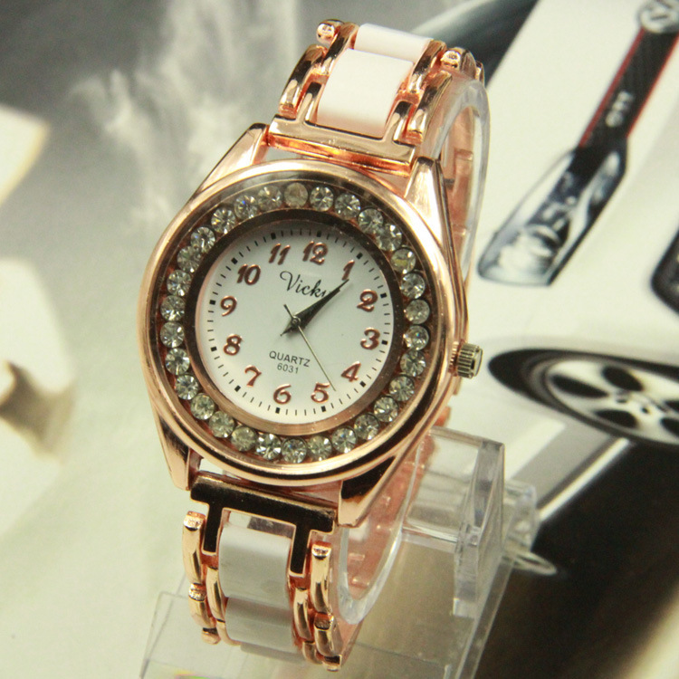 批量供應 韓國時尚白色仿陶瓷手鏈表 潮流女士 帶鉆時裝手表批發