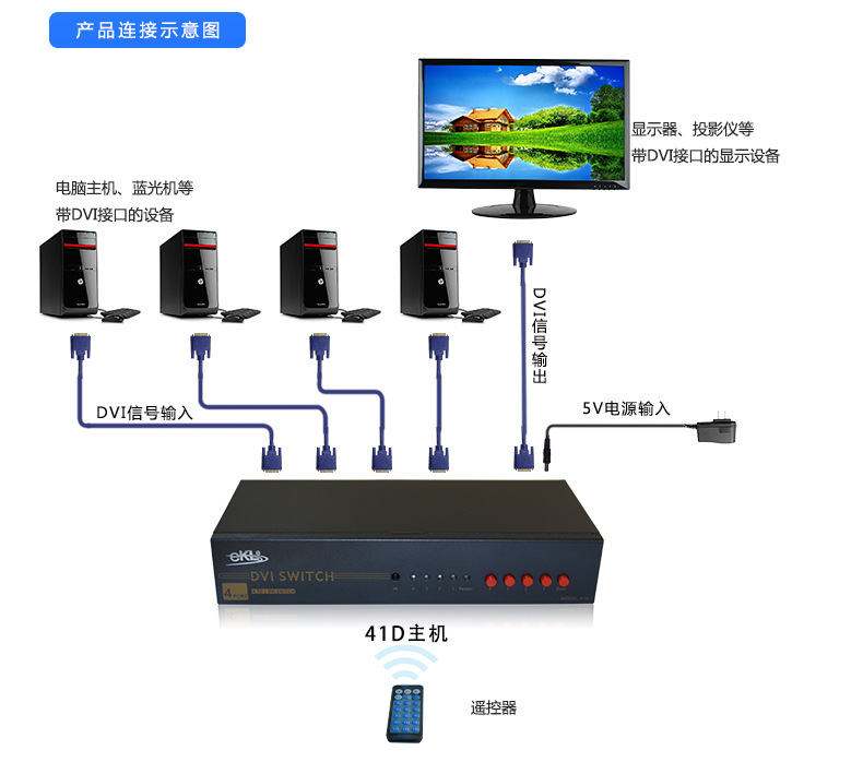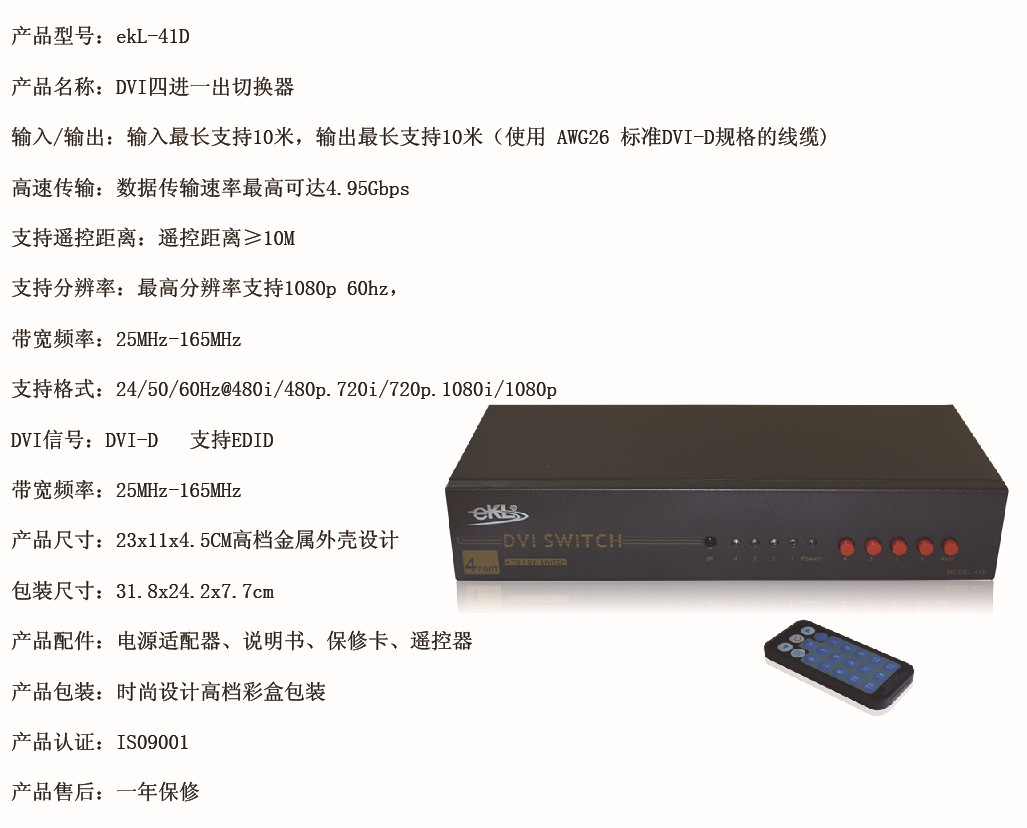 eKL-41D DVI四進一出切換器 高清視頻顯示 廠家供貨承諾售后