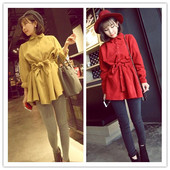 3152 秋冬季新款 韓版拉鏈短款長袖翻領假兩件呢子襯衫女裝批發¥22.00