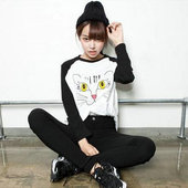 637 2015春裝韓國時尚女裝卡通貓咪胡子插肩袖長袖T恤 打底衫¥10.50