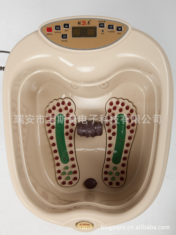 2. 此保[jian]足浴器是根據腳的穴位分布和骨骼的結構而設計,適合各種腳型。其功能選擇開關可選擇不同的按[mo]功能。按[mo]功能有效地按[mo]各個部位;熱水循環按[mo]腳部,使腳部可享受熱水??;紅外線按[mo],促進血液循環。