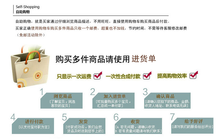 1:請在拍下前仔細閱讀寶貝描述及相關說明,買家拍下后,即視為同意該產品的價格、特性及相關信息。由于客服一般服務比較多,如果回復稍微有點慢,敬請廣大客戶理解一下,請耐心等待客服們的回復哦!