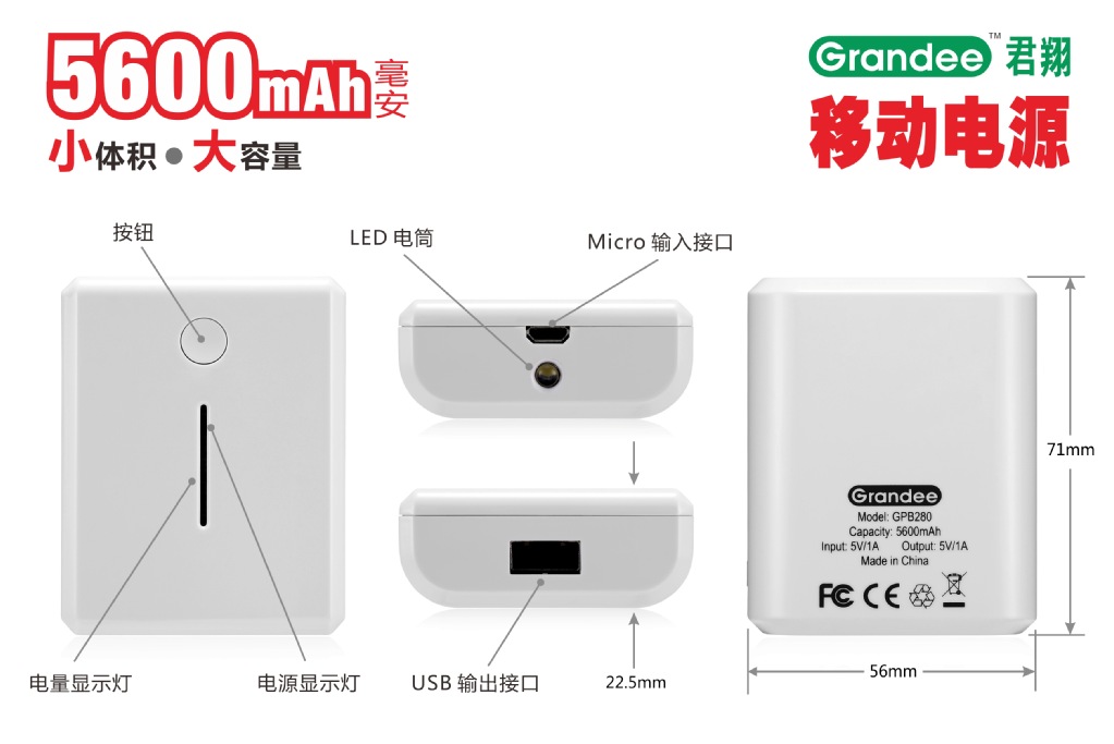 "君翔"品牌 5600(毫安) 移動電源