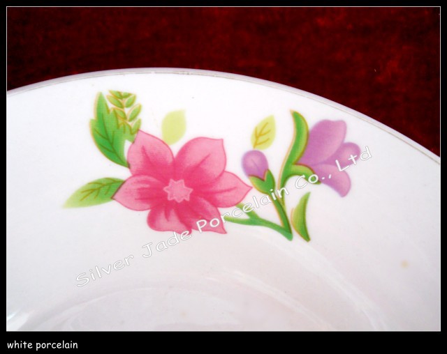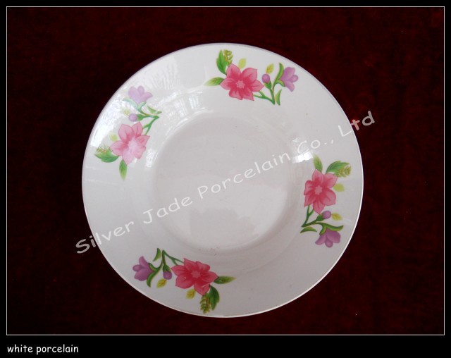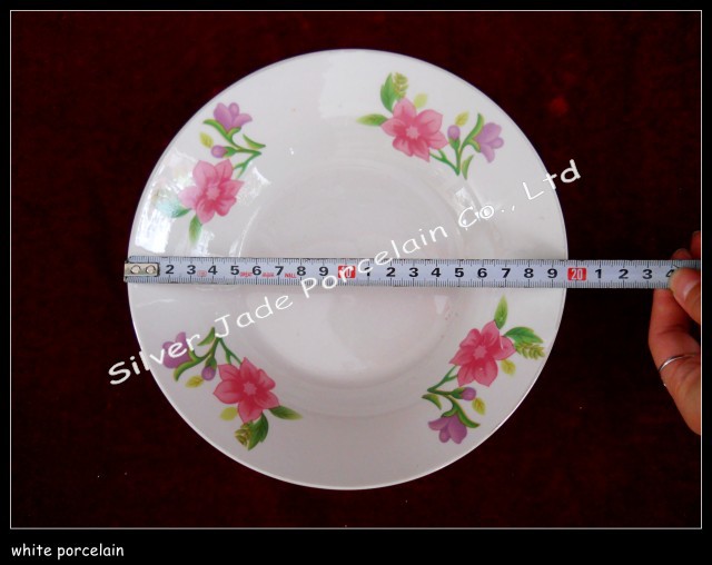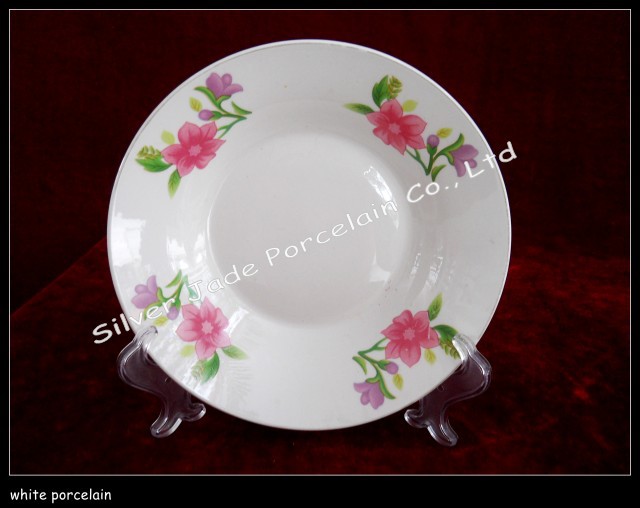 8寸朵花貼花圓口陶瓷深湯盤