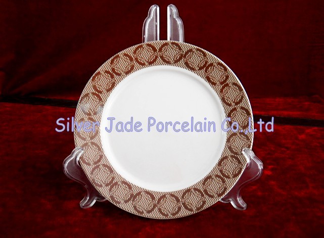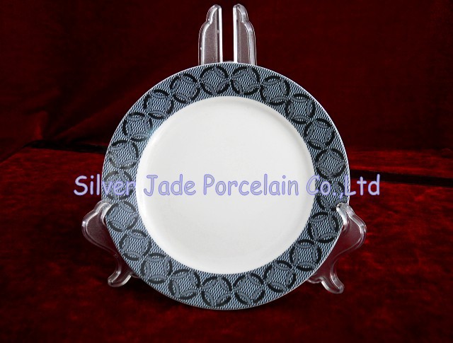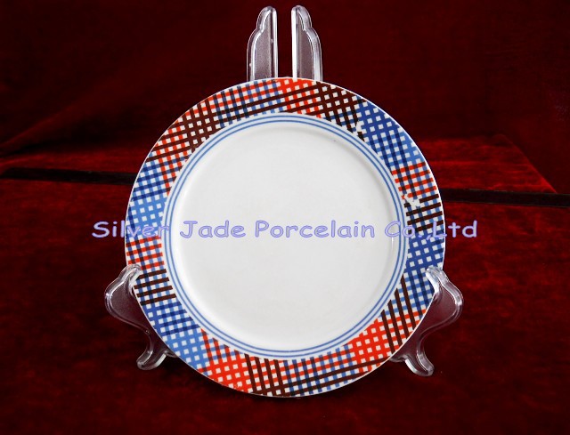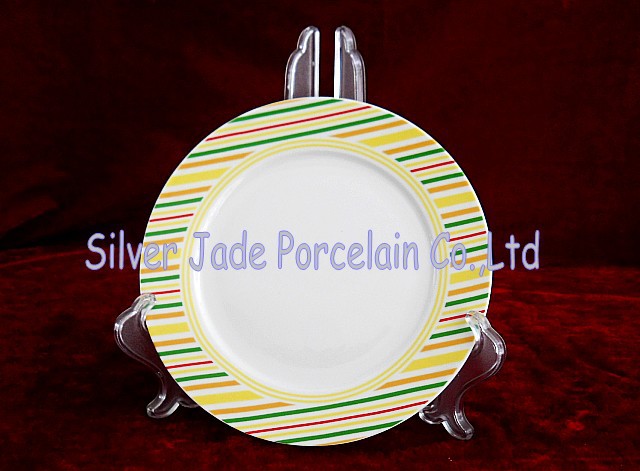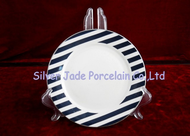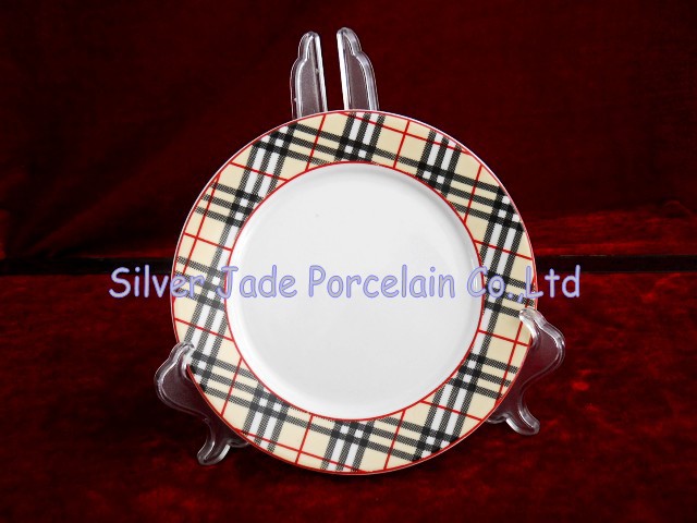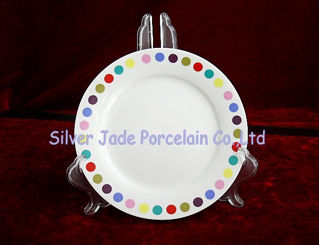 廠家直銷 7 寸幾何圖形貼花陶瓷盤子,點心盤子,平盤子