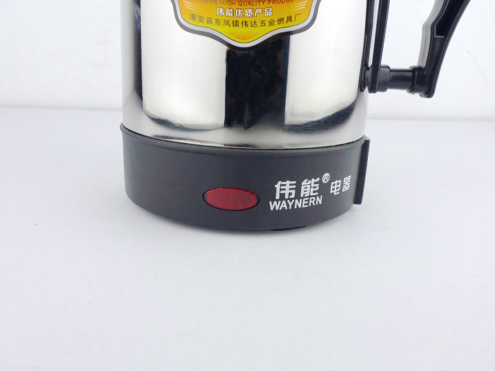 偉能牌防干燒連體電熱杯,集眾多同類產品之優,經過精心研制,爐體內部采用雙層隔熱,發熱體運用優質電熱原件并加上耐高溫合金材料,使用時熱效率高,加熱均勻,省時省電,使用壽命長等優點.杯體選用高級不銹鋼原材料制造.本產品不但外觀精美,造型新穎,工藝先進,耐磨耐腐蝕等特點,而且具有使用方便,安全可靠等特點,是理想的高效節能型電熱精品!