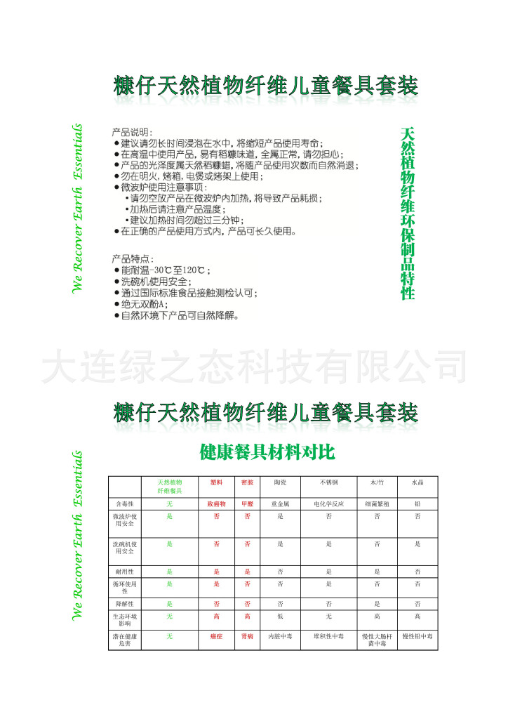 以“稻殼”為生產原料制成.注重健康和環保概念。各項衛生指標均符合國家食品衛生標準和美國FDA衛生標準;已通過SGS檢測,符合歐盟檢測指標;對兒童身體健康無任何危害,并且丟棄后在自然環境下可以降解;是我們日常生活中,消除白色污染、保護資源和生態環境必不可少的綠色產品。
