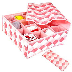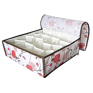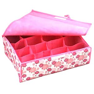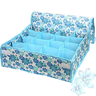 日常用的小件衣物找起來總讓人頭痛不已:一不小心就被壓在大件衣物下,消失的無影無蹤;襪子也常常是少一個或顏色配錯搞混,差一點耽誤了上班時間;即使收拾了放一起看上去也總是亂亂的。有了內衣盒,就好辦啦,十六個小格,容量大,可任意放入內衣褲、襪子、手套、手帕、口罩、毛巾等小件物品。不用時也可折疊起來,一點都不占空間。