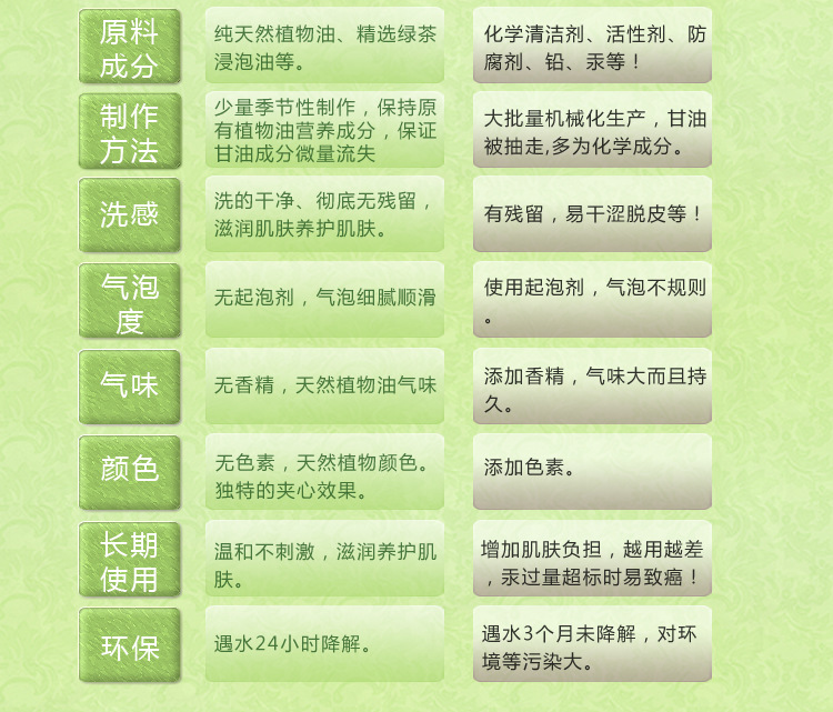 而綠茶古皂不單單是制作工藝和功效與敘利亞古皂有區別。且更容易分辨。