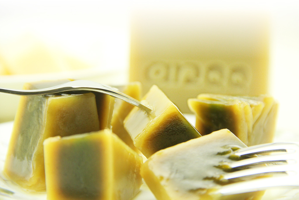 而以植物浸泡萃取工藝研究手工皂且制成夾心形綠茶古皂的,
