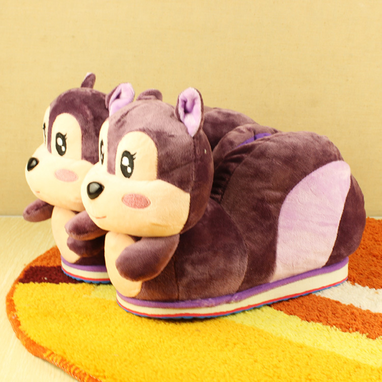 萌物小松鼠卡通棉鞋女生秋冬天..