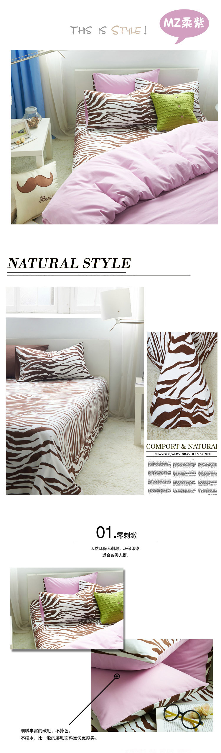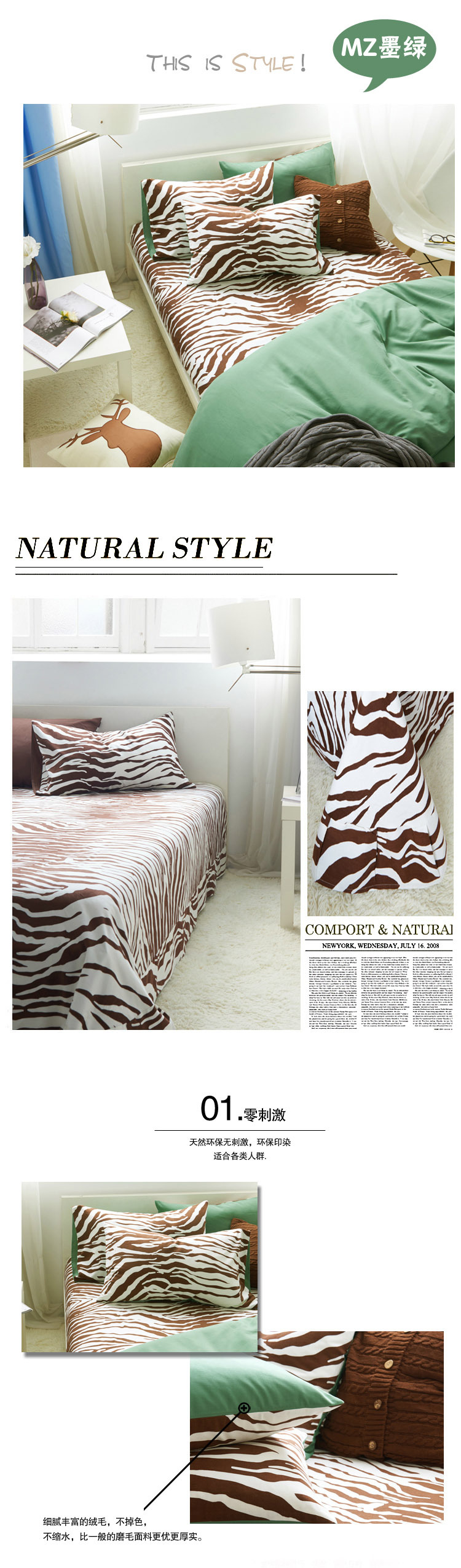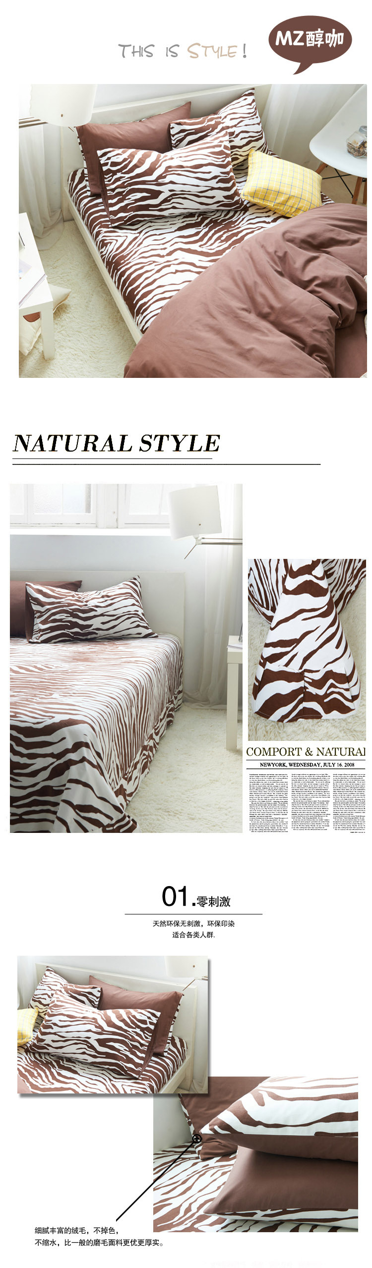 MZ咖啡色斑馬紋21支全棉磨毛四件套