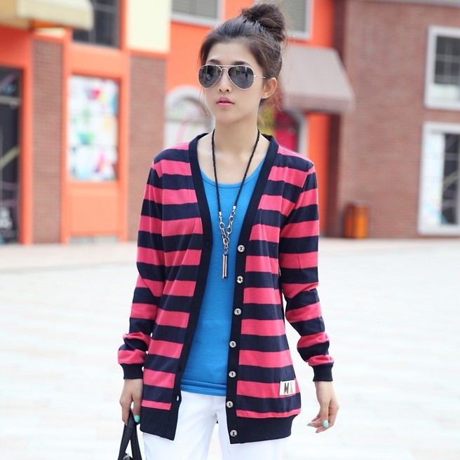 產品名稱長袖條紋針織開衫外套顏色說明