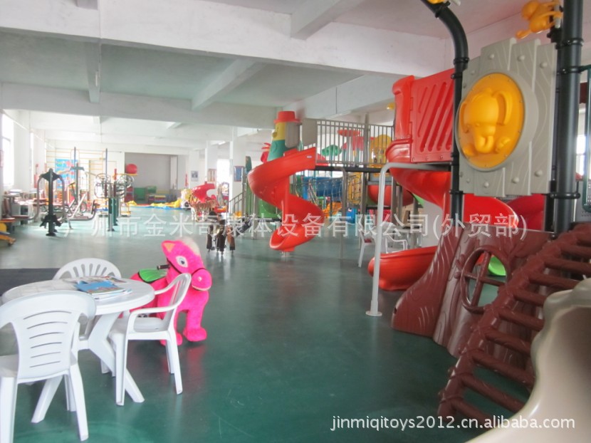 金米奇公司引進先進設計理念,結合世界兒童特點,經過有關專家指導,全新推出系列滑梯。該滑梯以進口工程塑料為主,鐵件制品味輔,鐵件經磷化、除銹、除油、鍍鋅、靜電、噴塑、抗紫外線、色彩艷麗、無毒無污染。