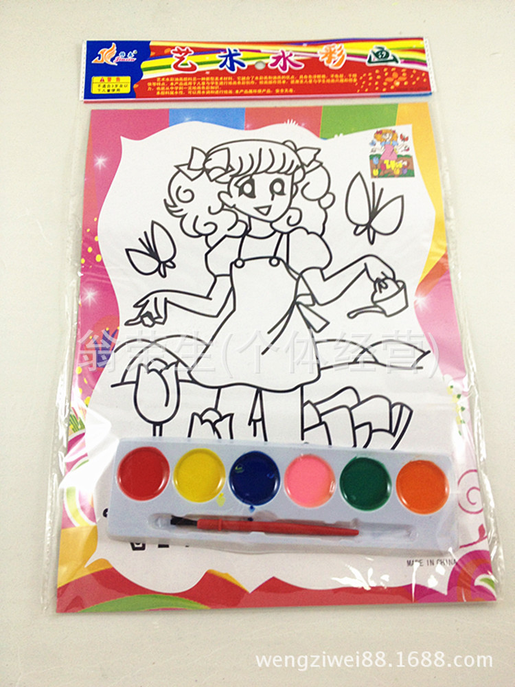 【配料】:每包2張不同圖。6色顏料,刷子1個