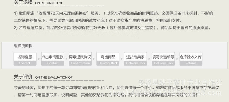 歡迎訂購本社產品,本社以質量為目標,請認準手機號為 的本人操作,qq17 旺旺 耿平茶葉合作社。其它聯系人,本社不授權聯系。2014年9月10日 理事長:吳耿平 安溪縣耿平茶葉專業合作社宣。出重拳,打擊假冒本社聯系人,出售本社產品。