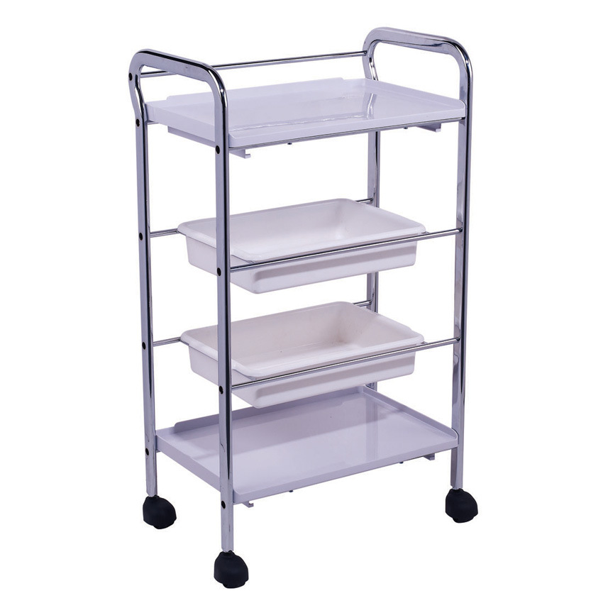 廠家批發B-641電鍍美容工具車 美發工具車 四層小推車帶塑料盆