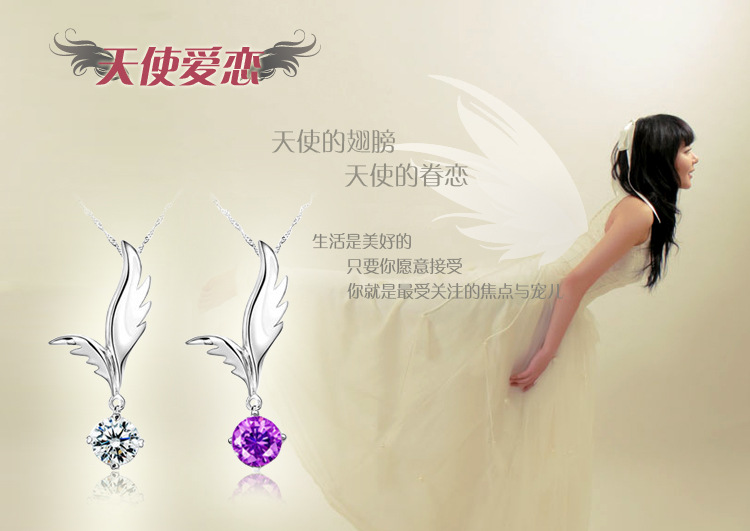 淘寶天貓特賣 925純銀天使愛戀吊墜 進口純白銅鍍白金項鏈 批發