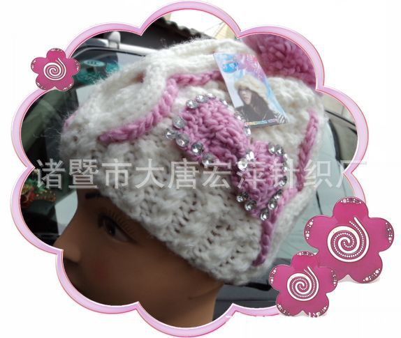 團購包郵純手工編織韓版蝴蝶結大毛毛球毛線帽