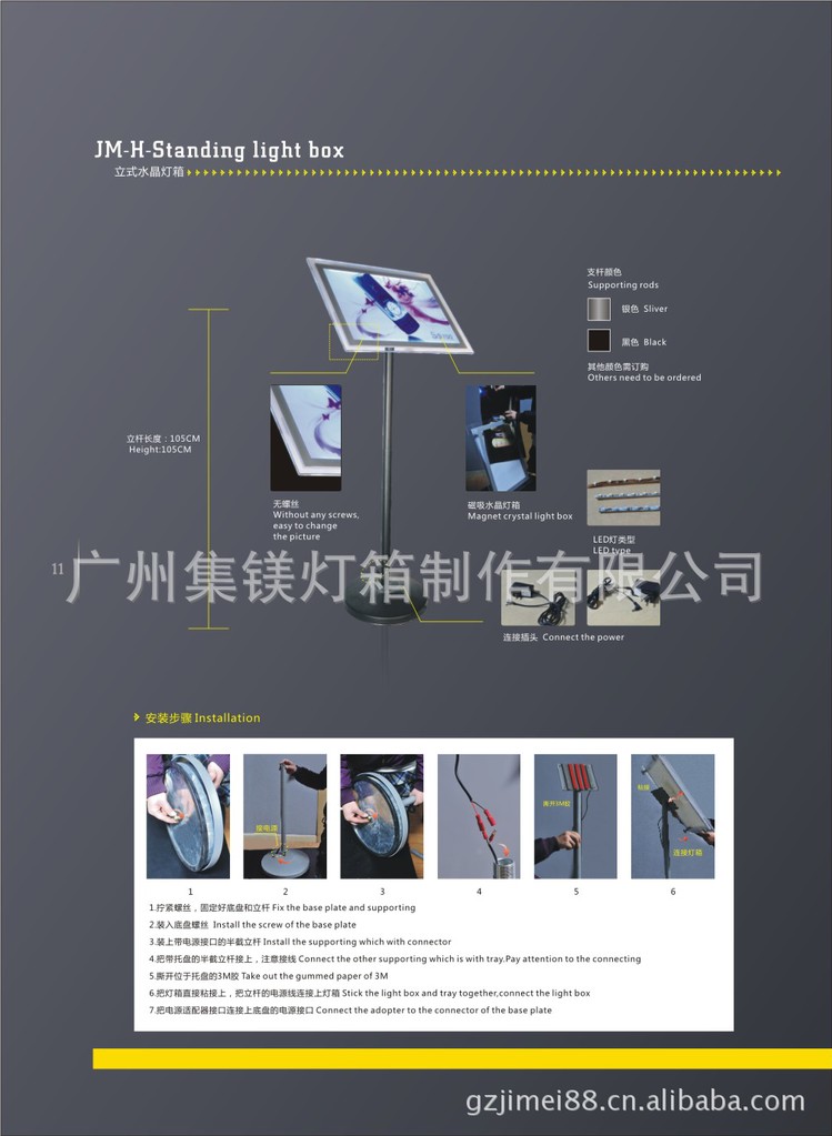 我是廣州集鎂燈箱廠,我司專業生產、超薄、水晶、磁吸、顯示屏走字、感應、吸塑、滾動、動感燈箱及銷售原材料、展示器材、配件等,歡迎來電咨詢。客服電話:工廠:/58/68 移動電話:QQ:1網址:使用范圍:廣泛用于商業中心,超市,專賣店,連鎖,快餐店,酒店,銀行,地鐵,婚紗影樓,賓館,電梯,展廳,櫥窗,辦公家居裝飾。