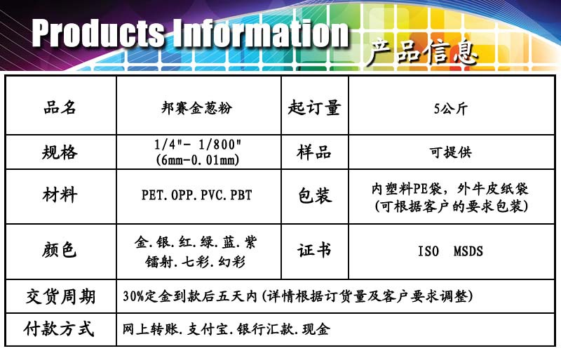 PET 材質的閃閃發光的粉普通七彩幻彩-邦賽!您的優質供應商!46.00