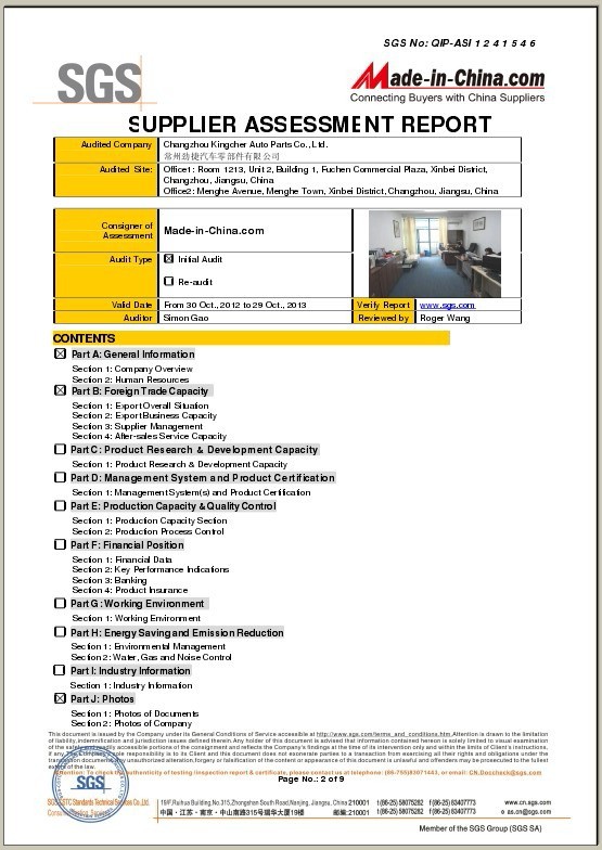 Changzhou Kingcher Autoparts Co,.Ltd.