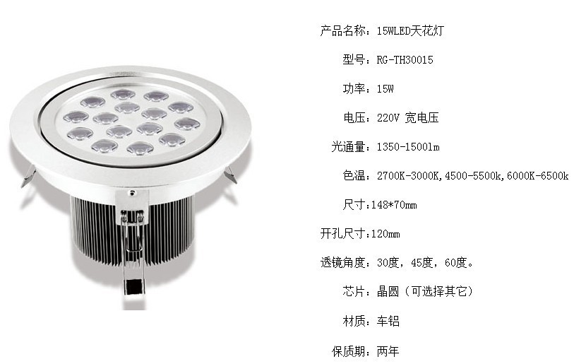 大功率LED天花燈采用多顆高效LED光源,單顆高效可達100LM/W,環保節能,光學透鏡,保證角度精準,且光通輸出率能達92%以上