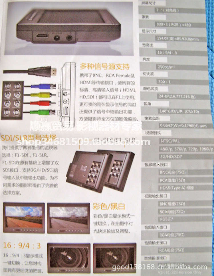 免郵!富萊仕F1 Ⅱ代 7寸高清LED監視器HDMI SDI 高清監視器