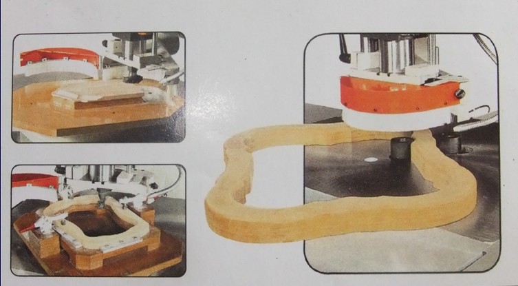 鏤銑機用于紋的全通或半通的仿形加工,適合紅木,白木,木制工藝品,鋁制品的銑花,各類裝飾木線T形槽,燕尾槽,槽直等加工;利用模板以完成木制品零部件的刨光,倒角,鉆孔,修邊,仿形(開圓孔,開橢圓孔,不窺則孔及仿形銑簡單浮雕等),適合中,重型切削加工。