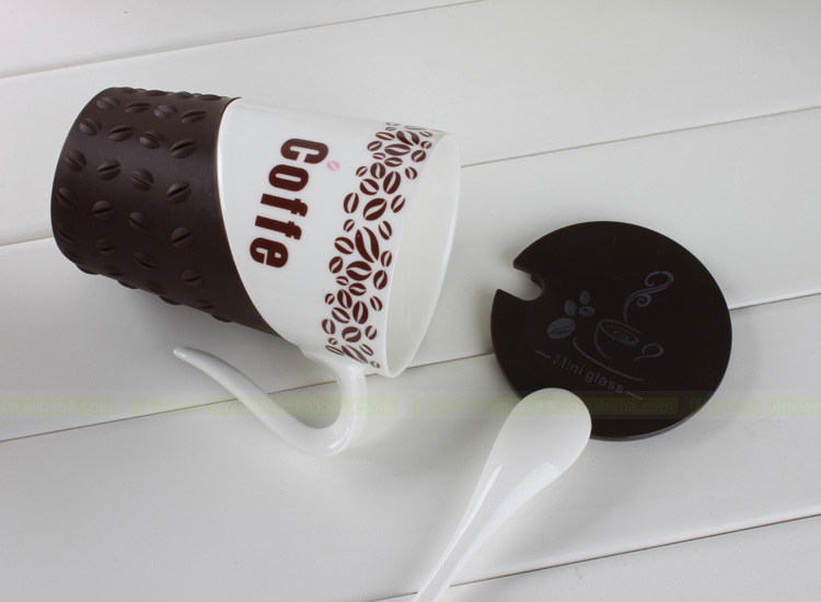 陶瓷杯體 塑料蓋 陶瓷咖啡勺